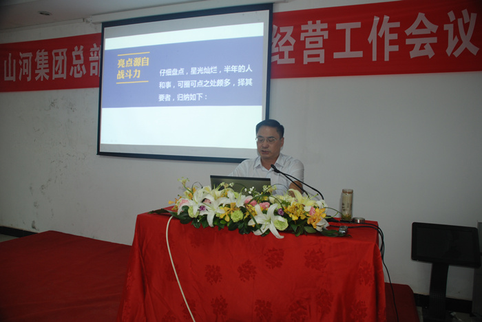 七月的大崎山之巔松濤陣陣,清風(fēng)拂面。山河集團(tuán)總部2013年上半年經(jīng)營(yíng)工作會(huì)議于7月27日在這里隆重召開(kāi),這是集團(tuán)公司自湖北區(qū)域公司從總部分離之后召開(kāi)的第一次半年經(jīng)營(yíng)工作會(huì)議,參會(huì)人員共計(jì)五十余人,會(huì)議分上午場(chǎng)和下午場(chǎng),由集團(tuán)公司總經(jīng)理龔衛(wèi)國(guó)同志主持。