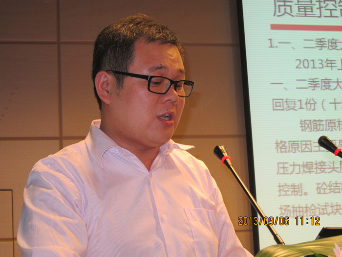 視頻過后,湖北公司副總工羅定軍進(jìn)行工程管理部工作匯報(bào),分別從質(zhì)量控制、進(jìn)度管理、創(chuàng)優(yōu)計(jì)劃、相關(guān)質(zhì)量問題防治等方面進(jìn)行闡述。他對湖北公司2013年一、二季度質(zhì)量安全大檢查中的工程質(zhì)量情況進(jìn)行了通報(bào),并對進(jìn)度管理提出了建議,特別對省結(jié)構(gòu)優(yōu)質(zhì)工程、楚天杯申報(bào)條件進(jìn)行了介紹。