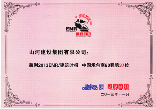 11月22日,2013ENR/建筑時報“中國承包商和工程設(shè)計企業(yè)雙60強”頒獎典禮在廣西南寧市隆重舉行,住房和城鄉(xiāng)建設(shè)部政策研究中心、中國建筑業(yè)協(xié)會、中國勘察設(shè)計協(xié)會、廣西住建廳、廣西建筑業(yè)聯(lián)合會、廣西勘察設(shè)計協(xié)會等領(lǐng)導(dǎo)出席了頒獎典禮并致辭。山河集團成功入選,位列第37位,這是集團首次申報并首次成功入選中國承包商60強企業(yè)。