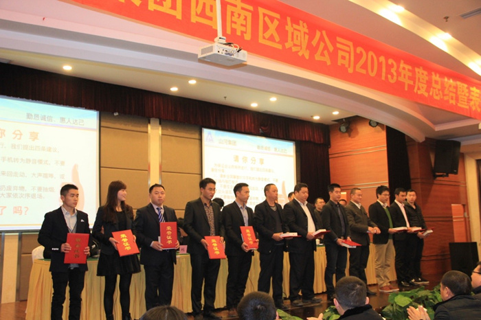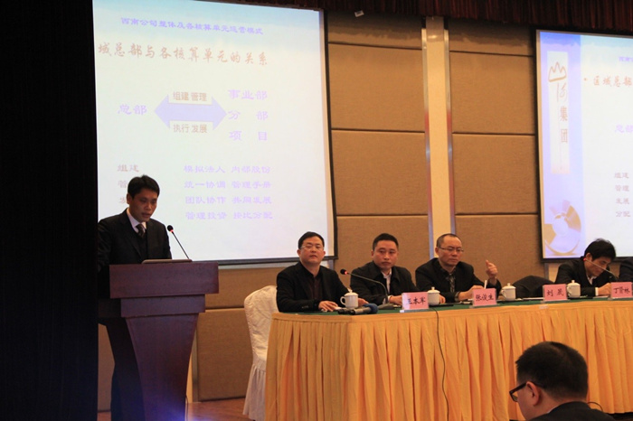 西南區(qū)域公司總經(jīng)理丁賢林在會議上以“理清思路、升級管理、品牌共建、成果共享”為主題的報告,他首先感謝全體員工一年來的辛勤努力工作,并充分肯定了公司員工一年來各項工作所取得的成績。并對西南公司整體及各核算單元運(yùn)營模式,2013年西南公司總體運(yùn)營效果及分析,以及2014年西南區(qū)域公司運(yùn)營目標(biāo)及措施做了具體報告。
