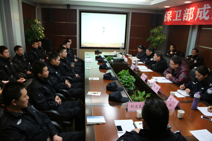 首先,孫寶環(huán)經(jīng)理宣讀了《關(guān)于成立保衛(wèi)部的決定》、《關(guān)于徐剛等同志職務(wù)聘任的決定》兩份文件,黎樂主任介紹了山河集團(tuán)的發(fā)展情況。隨后,董事長程理財介紹了保衛(wèi)部成立的背景和主要職責(zé),并對保衛(wèi)部員工提出了兩點(diǎn)要求:一是要勤鍛煉、勤學(xué)習(xí),二是要愛崗敬業(yè),防患于未然,疏理、化解矛盾;同時要制訂好職業(yè)生涯規(guī)劃,選擇好未來的職業(yè)發(fā)展方向,在山河的平臺上成長成才。