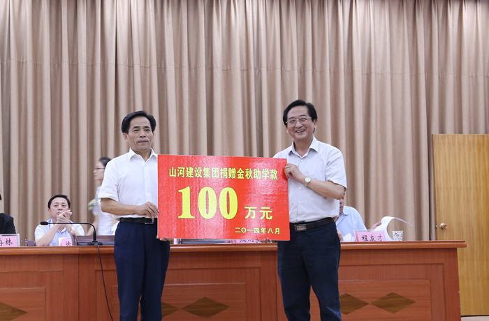 8月28日上午,“山河扶貧助學”資助儀式在黃岡市委小禮堂舉行,山河集團捐資100萬元資助貧困學生,加上8月22日向團風縣捐助的80萬元,今年山河集團共捐資180萬元作為2014年貧困學生救助資金。這是山河集團與黃岡市總工會聯手扶貧助學的第九年。