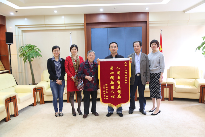 10月17日一早,武漢城市職業(yè)學(xué)院學(xué)前教育專業(yè)大二學(xué)生陳鈴71歲的奶奶就和爸爸、舅爺一起坐第一班城際列車,從黃州趕到武漢,為山河集團(tuán)送來一面寫有“人間自有真情在 愛心捐款暖人心”的錦旗。