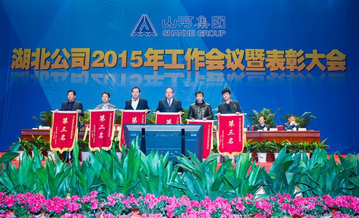 2015年3月21日上午,山河集團(tuán)湖北公司“2015年工作會(huì)議暨表彰大會(huì)”在洪山禮堂一號(hào)廳隆重舉行。會(huì)議對(duì)2014年先進(jìn)項(xiàng)目部和個(gè)人進(jìn)行了表彰,同時(shí)將湖北公司2015年的整體工作進(jìn)行了全面部署。山河集團(tuán)董事長程理財(cái)、黨委書記舒先厚、總經(jīng)理龔衛(wèi)國、常務(wù)副總經(jīng)理兼湖北公司總經(jīng)理林中茂、集團(tuán)公司經(jīng)營班子、黨委成員、湖北公司經(jīng)營班子等多位領(lǐng)導(dǎo)出席本次會(huì)議。會(huì)議由湖北公司常務(wù)副總經(jīng)理柯為正主持。
