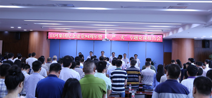 6月27日上午,山河集團紀念建黨94周年暨“三嚴三實”專題黨課報告會在山河企業(yè)大廈隆重召開,集團公司黨委班子、經營班子以及集團總部、地產集團、各區(qū)域公司、子公司的黨員和入黨積極分子總計200余人在全國各地通過視頻會議同步學習。會議由集團公司黨委副書記張玉瓊主持,湖北省委委員、省委黨校原常務副校長馬哲軍講授專題黨課,黃岡市委組織部副部長雷興威、團風縣委組織部副部長徐超良應邀到會指導。