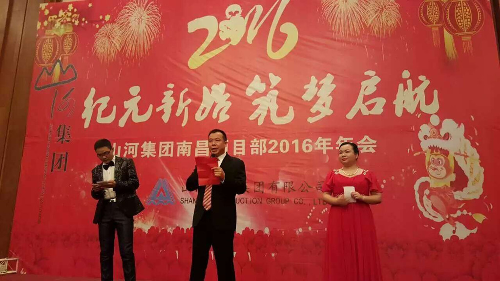 2016年1月16日,格蘭云天大酒店現(xiàn)場彩燈閃爍,座無虛席。山河集團(tuán)南昌項目部在這里隆重舉行了以“紀(jì)元新始 筑夢啟航”為主題的年會。湖北公司副總經(jīng)理左根生、項目部全體員工及嘉賓共計240余人齊聚一堂,共饗盛典。