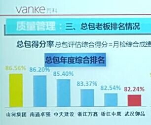 會上,南昌萬科公司依據(jù)月檢及季檢中質(zhì)量、安全、實測實量等指標(biāo),對2015年各項目總包進行統(tǒng)計排名。經(jīng)過評比,山河集團以優(yōu)異的成績在南昌萬科眾多總包中排名第一,再次獲評“南昌萬科最佳總包”。