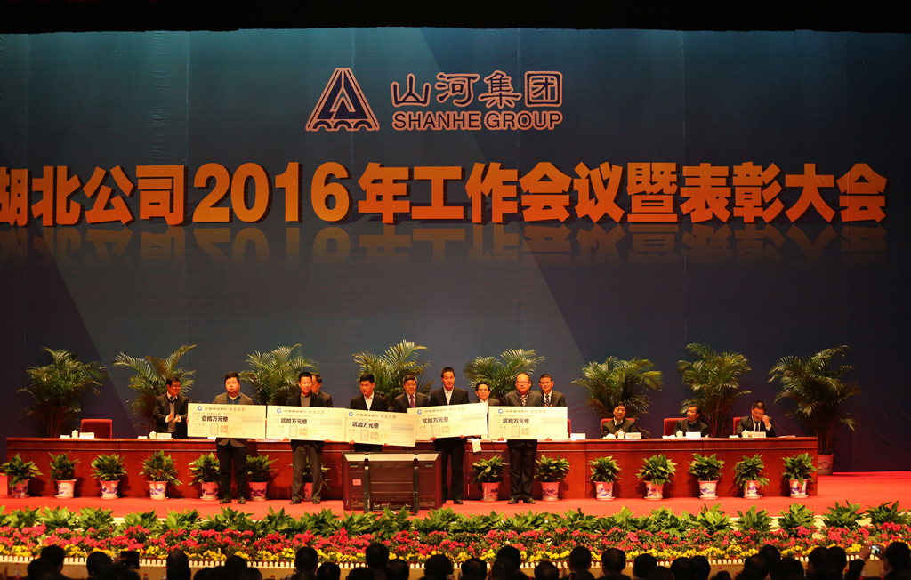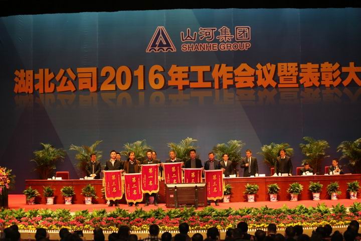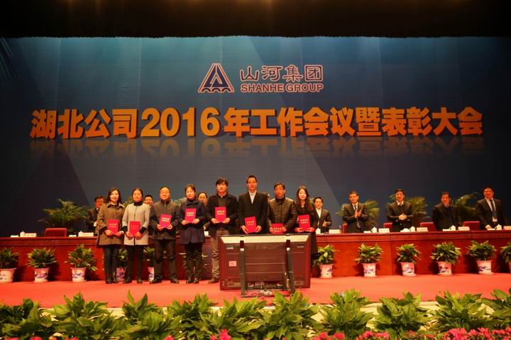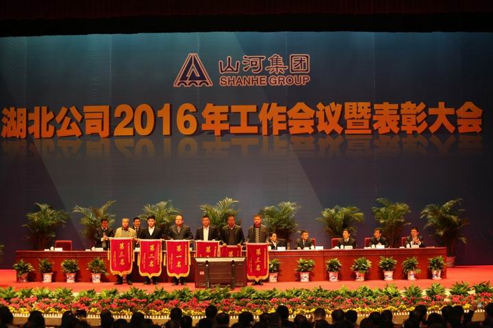 2月27日上午,山河集團(tuán)湖北公司2016年工作會議暨表彰大會在洪山禮堂一號廳隆重舉行。會議總結(jié)了2015年湖北公司各項(xiàng)重點(diǎn)工作完成情況,部署了2016年湖北公司發(fā)展規(guī)劃,并對優(yōu)秀項(xiàng)目經(jīng)理部及優(yōu)秀個人進(jìn)行了表彰。山河集團(tuán)董事長程理財(cái)、黨委書記舒先厚、總經(jīng)理龔衛(wèi)國、執(zhí)行總經(jīng)理姚偉、常務(wù)副總經(jīng)理林中茂、湖北公司常務(wù)副總經(jīng)理柯為正等領(lǐng)導(dǎo)出席本次會議。會議由湖北公司人事行政總監(jiān)李穎主持。
