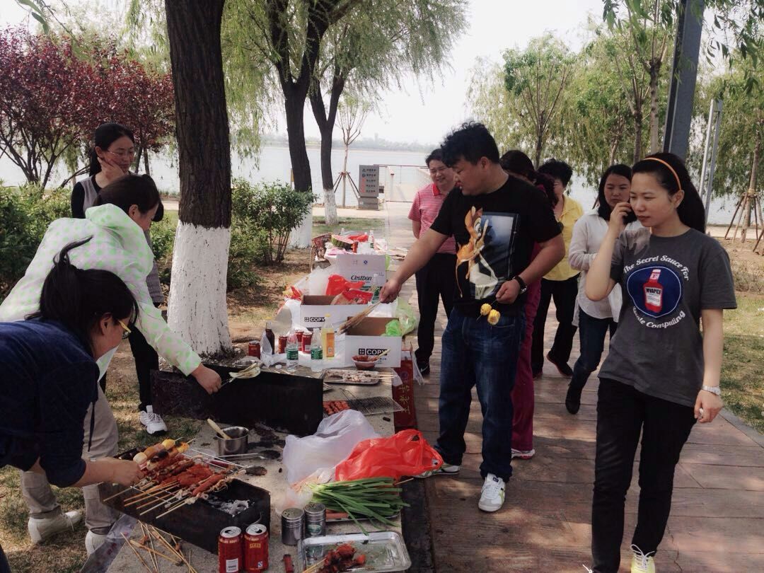 徒步行活動結束后,大家驅車來到金海湖燒烤,大家一起動手,架起爐子開始烤頭一天準備好的食物。雖然都不是專業(yè)燒烤師,但個個都有模有樣,一會功夫,陣陣香味撲鼻而來,大家一邊品嘗著美食,一邊暢談上午徒步行的收獲,希望公司以后多組織類似的活動豐富員工的業(yè)余文化生活。