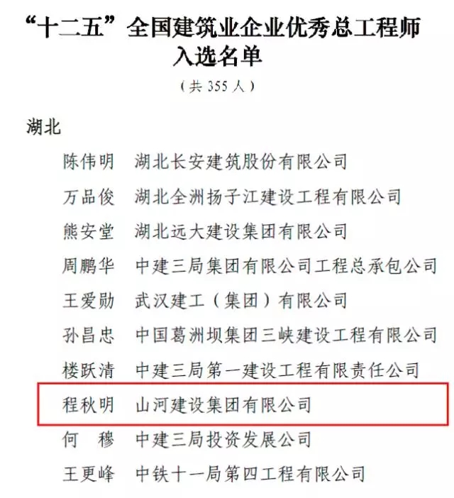 近日,山河集團(tuán)總工程師程秋明入選中建協(xié)“十二五”全國建筑企業(yè)優(yōu)秀總工程師。本次評選旨在表彰“十二五”以來為我國城鄉(xiāng)建設(shè)做出突出貢獻(xiàn),并在科技進(jìn)步和管理創(chuàng)新工作中成績顯著的建筑業(yè)企業(yè)優(yōu)秀總工程師。