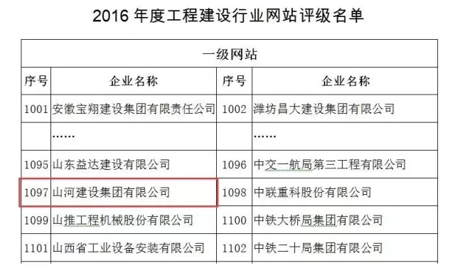 近日,由中國施工企業(yè)管理協(xié)會開展2016年度工程建設行業(yè)網(wǎng)站評級活動中,山河集團官網(wǎng)以完善的功能和良好的品牌體驗被評為“一級網(wǎng)站”榮譽稱號。
